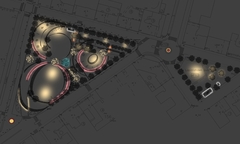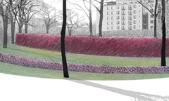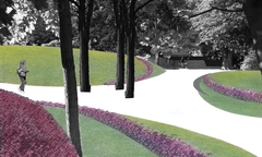 myötä muuttuvan puiston uudelleensuunnittelun.Ratkaisu perustui tilan ja toimintojen jäsentämiseen kaarevilla muodoilla, joita puistossa jo ennestään oli. Kasvillisuus ja maastonmuotoilu muodostavat kolme voimakasta päätilaa, joihin toiminnot sijoittuvat. Näiden väliin jää kulkureitteinä toimivat käytävät ja aukiot.